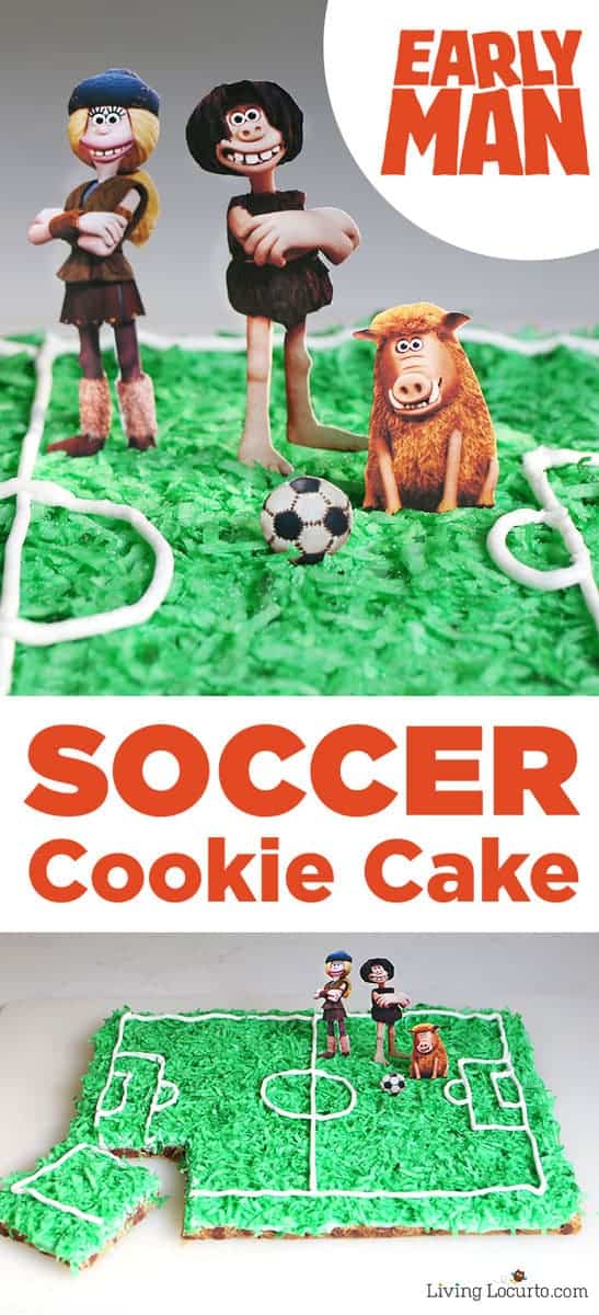 When I was told about the soccer theme in Early Man, I immediately thought of making a soccer field dessert. Since I have one of the best chocolate chip cookie recipes, I turned it into a tasty soccer cookie cake that is perfect for all kinds of events.
